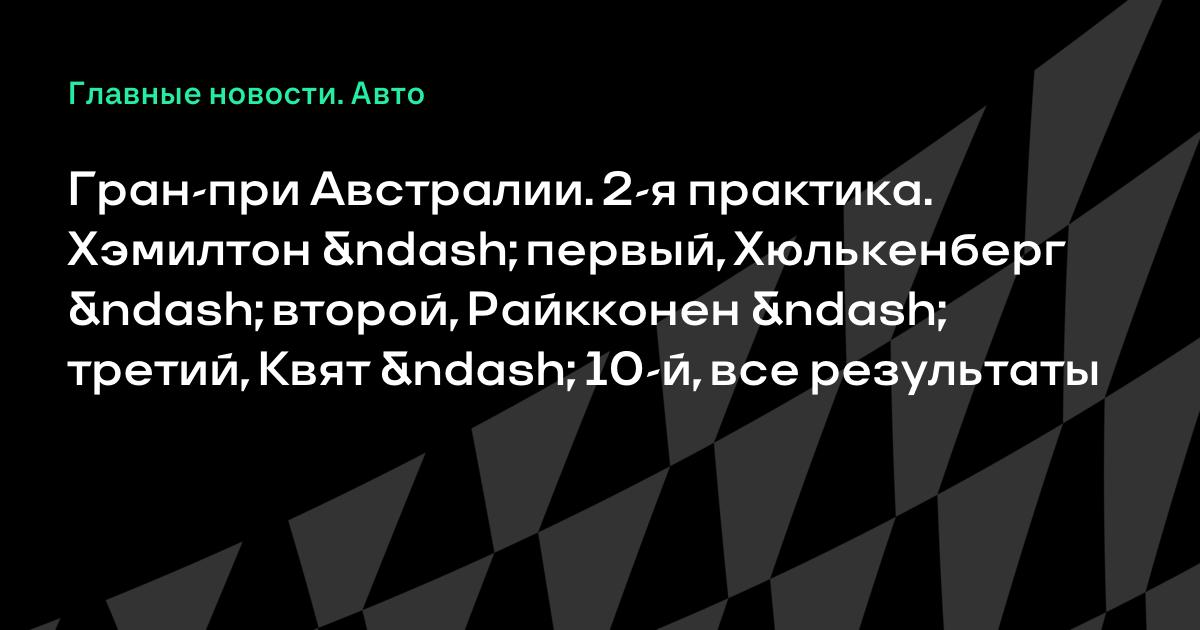 Гран-при Австралии. 2-я практика. Хэмилтон – первый, Хюлькенберг – второй, Райкконен – третий, Квят – 10-й, все результаты