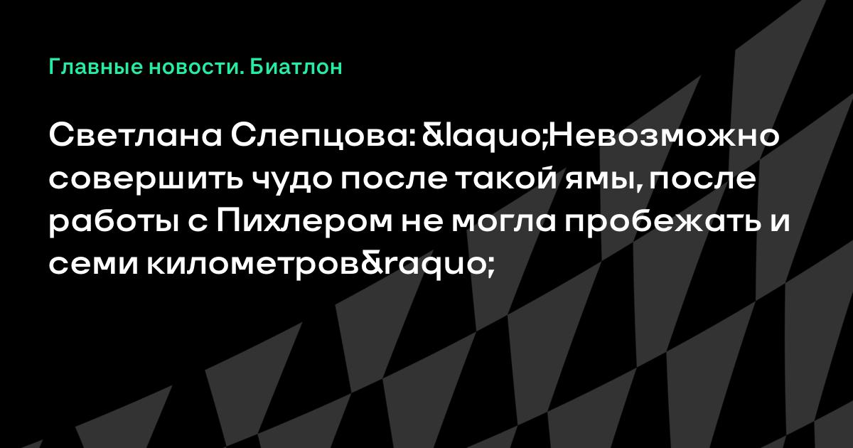 Невозможно совершить чудо после такой ямы, после работы с Пихлером не могла пробежать и семи километров. Этот сезон можно оценить на три с плюсом, потому что главный старт – чемпионат Европы – не сложился», – приводит слова Слепцовой «Р-Спорт».