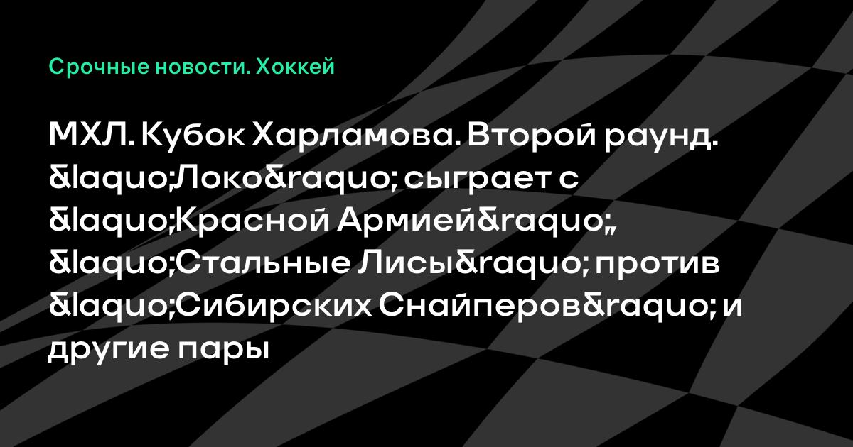 МХЛ. Кубок Харламова. Второй раунд. «Локо» сыграет с «Красной Армией», «Стальные Лисы» против «Сибирских Снайперов» и другие пары