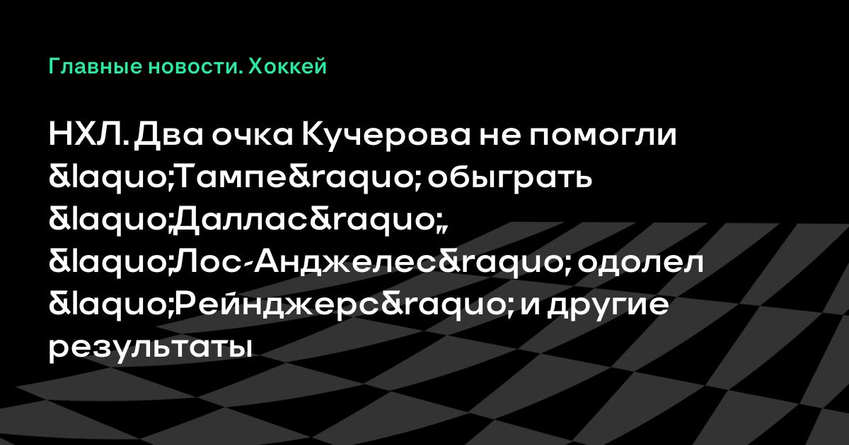 НХЛ. Два очка Кучерова не помогли «Тампе» обыграть «Даллас», «Лос-Анджелес» одолел «Рейнджерс» и другие результаты