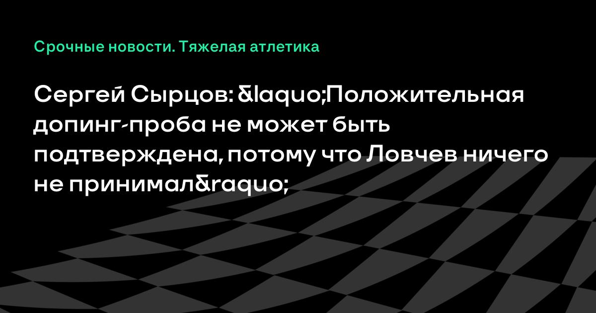 Президент Федерации тяжелой атлетики России (ФТАР) Сергей Сырцов сообщил, что допинг-проба «Б» Алексея Ловчева не могла дать положительный результат, так как спортсмен не принимал запрещенный препарат.