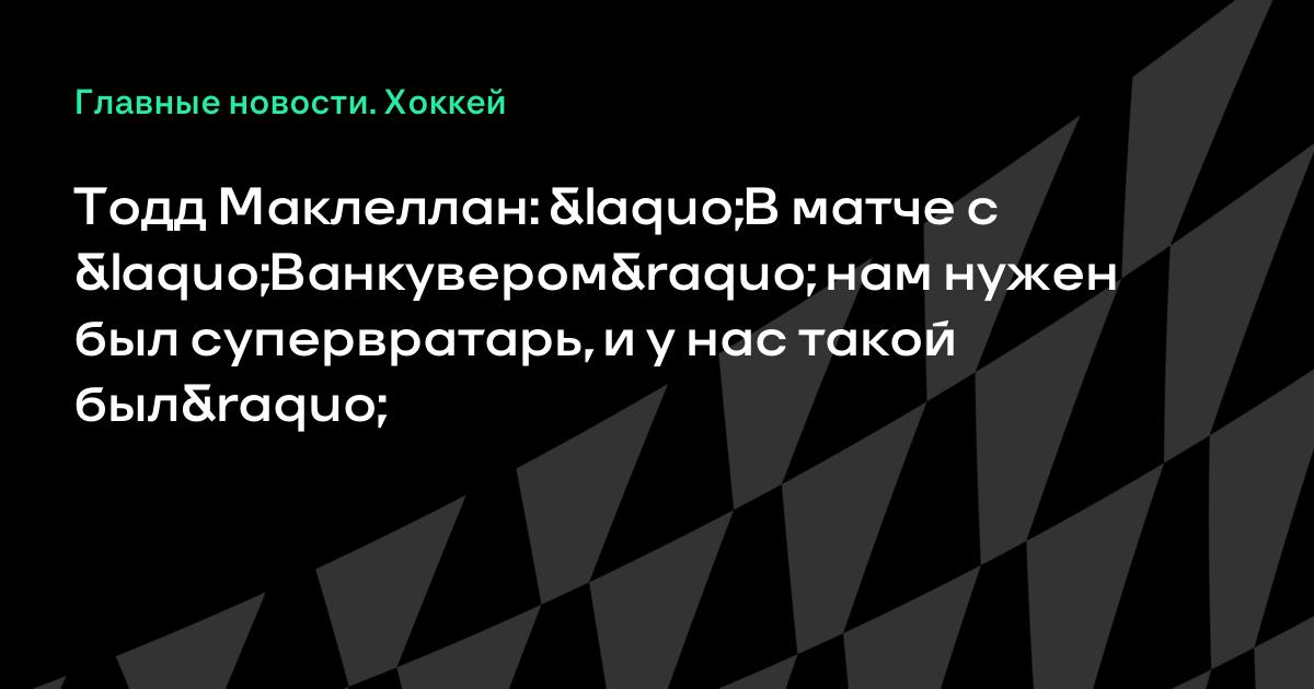 Тодд Маклеллан: «В матче с «Ванкувером» нам нужен был супервратарь, и у нас такой был»