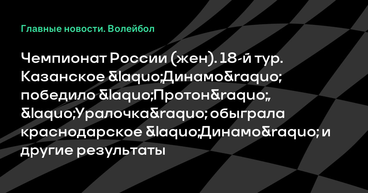 Чемпионат России (жен). 18-й тур. Казанское «Динамо» победило «Протон», «Уралочка» обыграла краснодарское «Динамо» и другие результаты