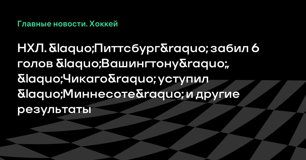 НХЛ. «Питтсбург» забил 6 голов «Вашингтону», «Чикаго» уступил «Миннесоте» и другие результаты