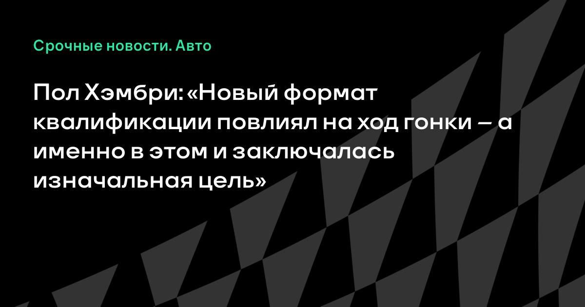 Пол Хэмбри: «Новый формат квалификации повлиял на ход гонки – а именно в этом и заключалась изначальная цель»