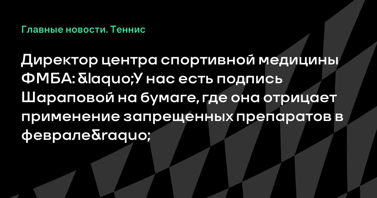 Директор центра спортивной медицины ФМБА: «У нас есть подпись Шараповой на бумаге, где она отрицает применение запрещенных препаратов в феврале»