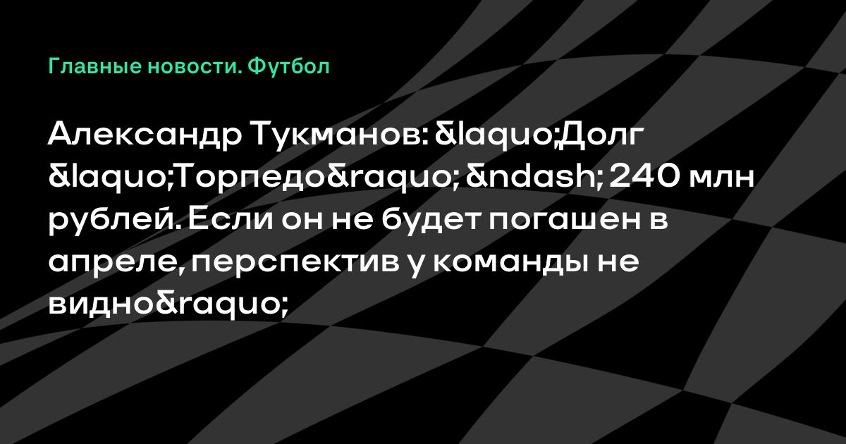 Александр Тукманов: «Долг «Торпедо» – 240 млн рублей. Если он не будет погашен в апреле, перспектив у команды не видно»