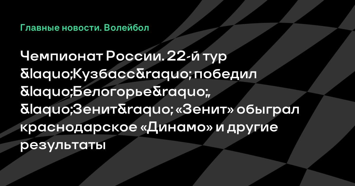 Чемпионат России. 22-й тур «Кузбасс» победил «Белогорье», «Зенит» «Зенит» обыграл краснодарское «Динамо» и другие результаты