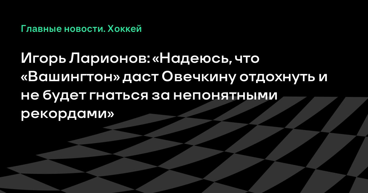Игорь Ларионов: «Надеюсь, что «Вашингтон» даст Овечкину отдохнуть и не будет гнаться за непонятными рекордами»