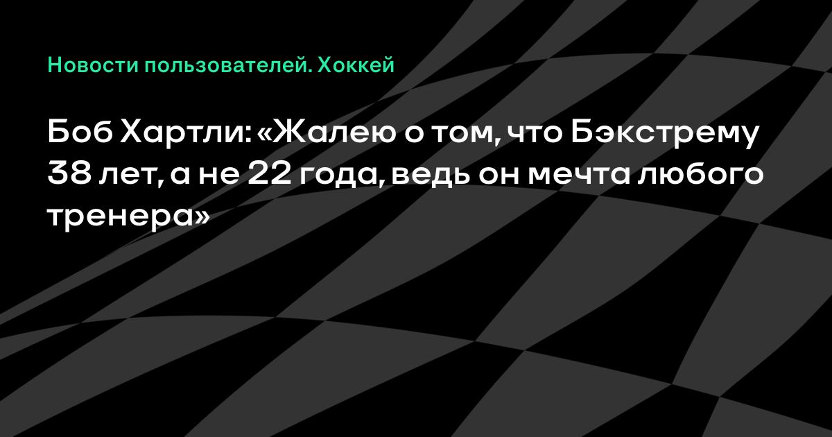 Боб Хартли: «Жалею о том, что Бэкстрему 38 лет, а не 22 года, ведь он мечта любого тренера»