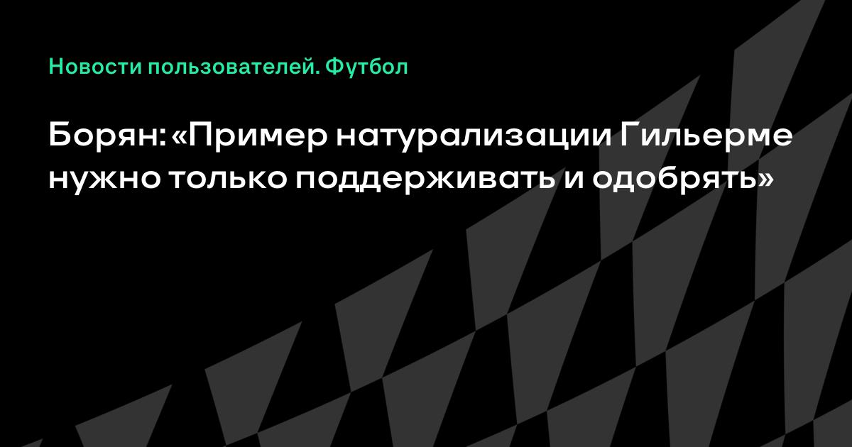 Сколько Гильерме уже выступает в России? Почти 10 лет? Ну, вы думаете, что у него нет причин выступать за сборную вашей страны? Он же не просто приехал и через пару месяцев попросил паспорт и возможность играть за национальную команду. У каждого есть свои причины. Я считаю, что такие примеры нужно только поддерживать и одобрять. Каждая сборная должна привлекать в состав лучших футболистов, которые ей доступны. Если Гилерме является одним из трех лучших вратарей с российским паспортом, то он должен быть в составе», – заявил Борян.
