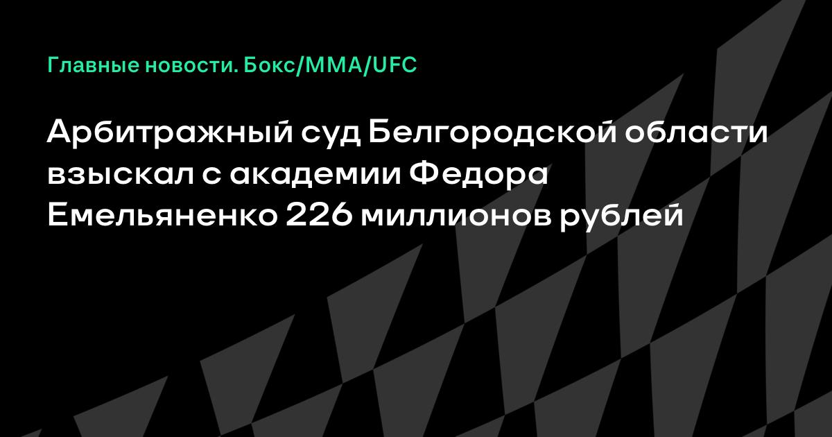 Арбитражный суд Белгородской области взыскал с академии Федора Емельяненко 226 миллионов рублей