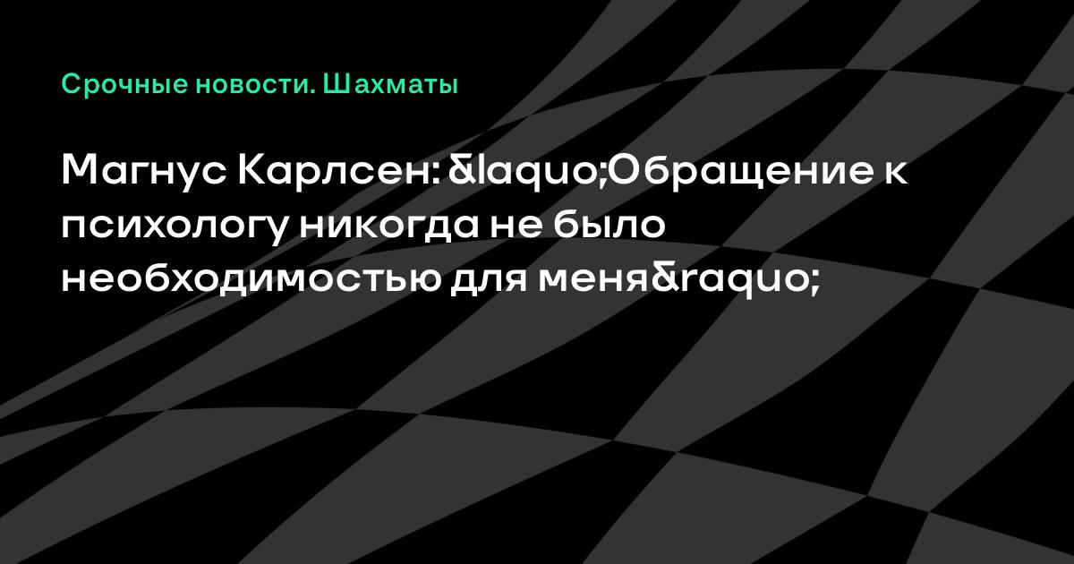 Магнус Карлсен: «Обращение к психологу никогда не было необходимостью для меня»