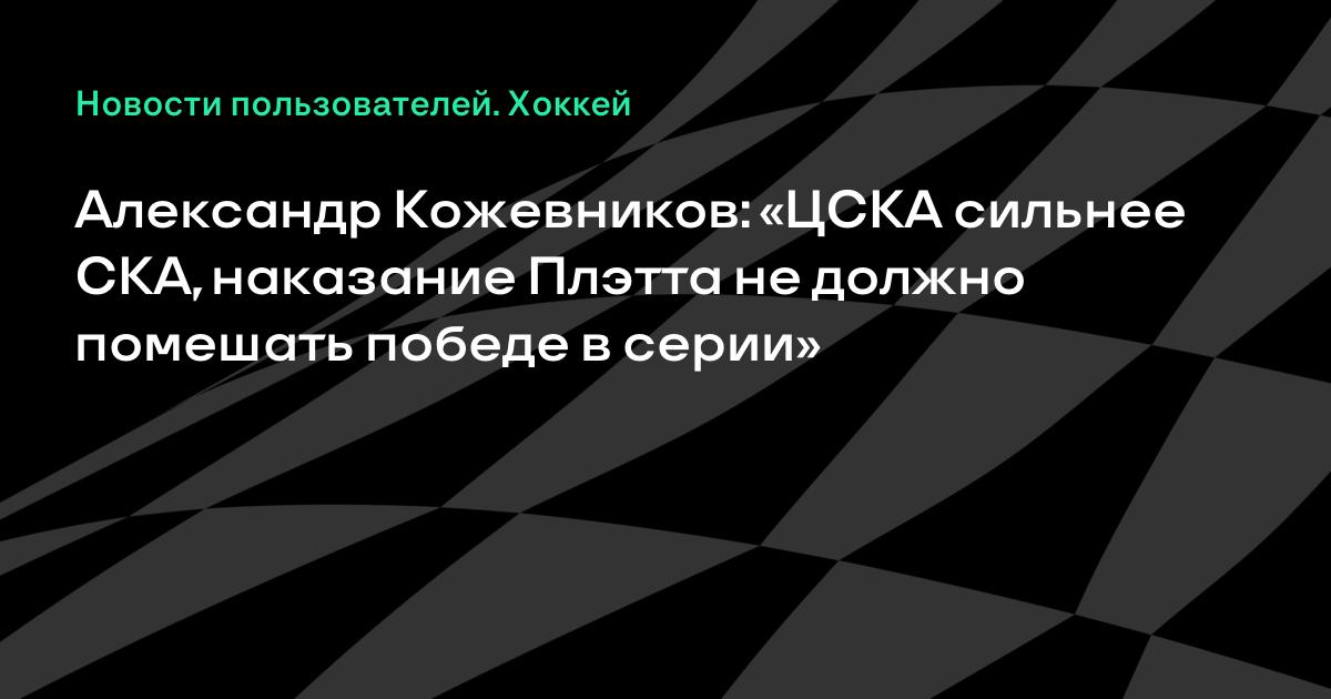 Александр Кожевников: «ЦСКА сильнее СКА, наказание Плэтта не должно помешать победе в серии»
