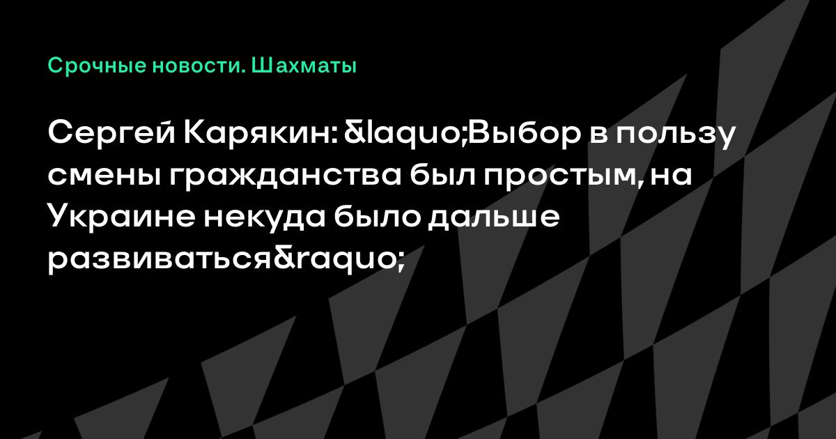 Сергей Карякин: «Выбор в пользу смены гражданства был простым, на Украине некуда было дальше развиваться»