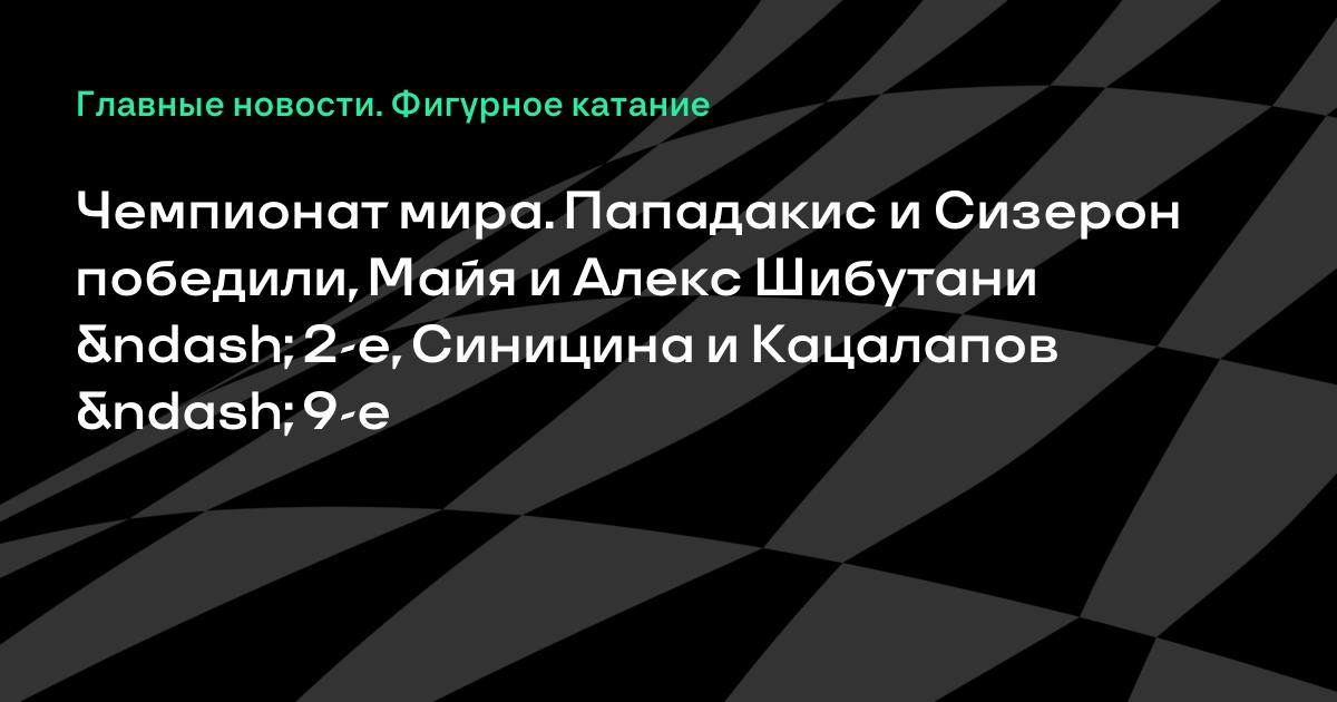 Чемпионат мира. Пападакис и Сизерон победили, Майя и Алекс Шибутани – 2-е, Синицина и Кацалапов – 9-е