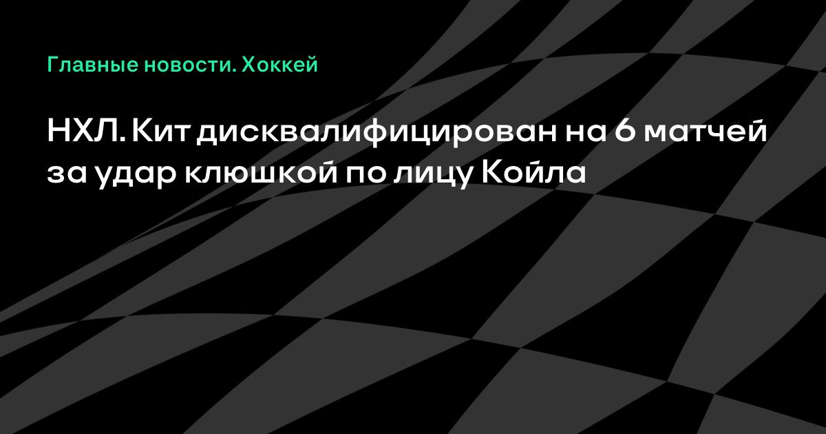 НХЛ. Кит дисквалифицирован на 6 матчей за удар клюшкой по лицу Койла