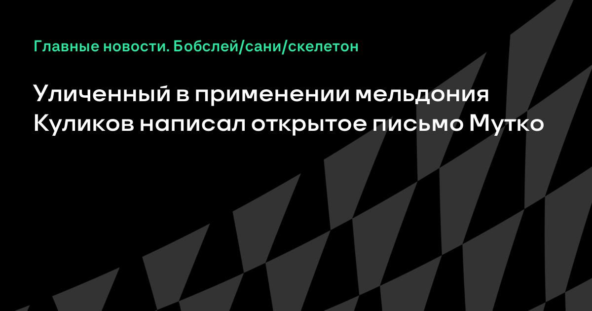 Российский скелетонист Павел Куликов, уличенный в применении мельдония, написал открытое письмо министру спорта России Виталию Мутко.