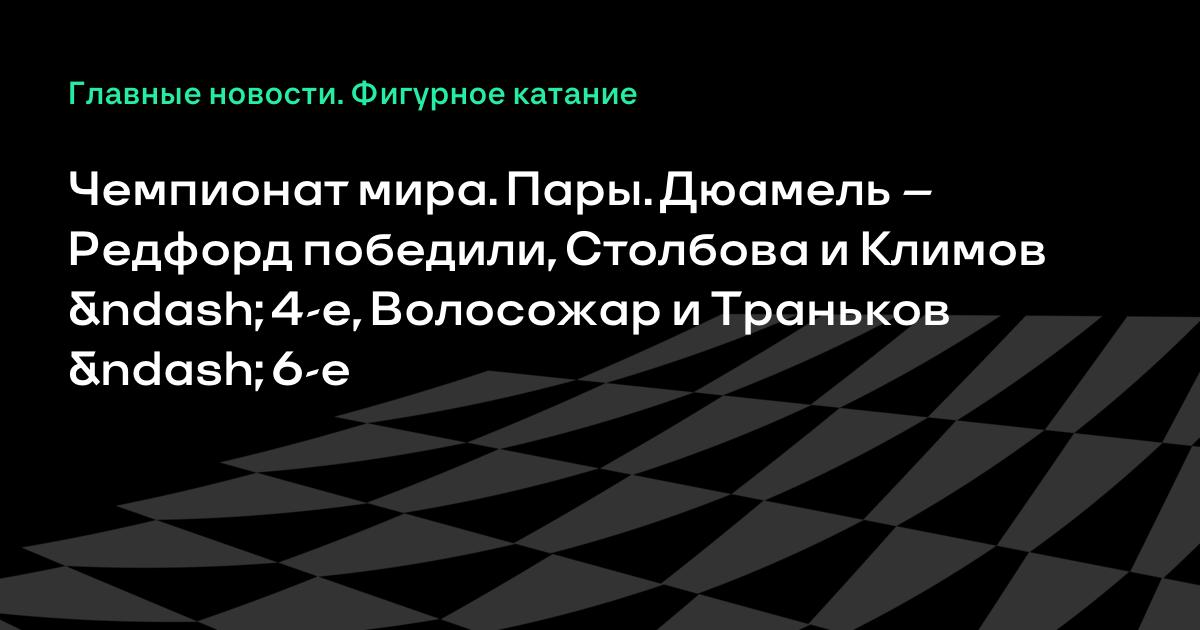 Чемпионат мира. Пары. Дюамель – Редфорд победили, Столбова и Климов – 4-е, Волосожар и Траньков – 6-е