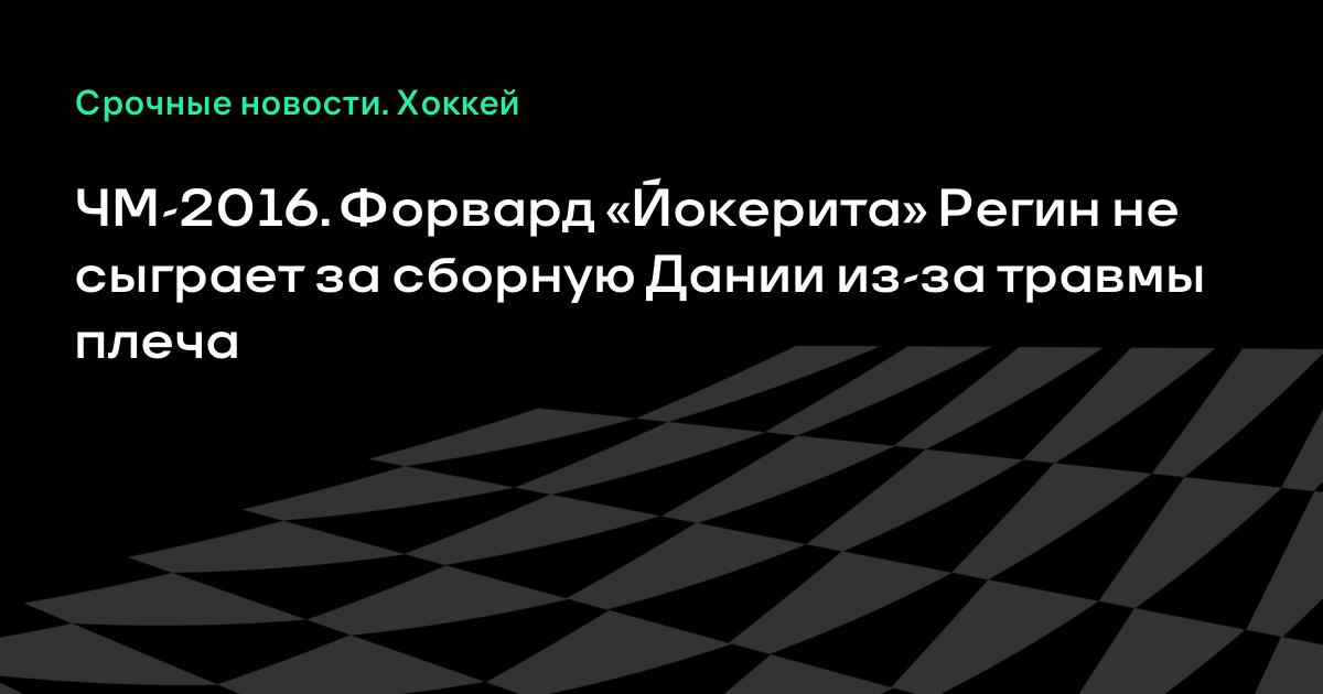 Форвард «Йокерита» Петер Регин не сможет помочь Дании на ЧМ-2016, сообщается на официальном сайте финского клуба.