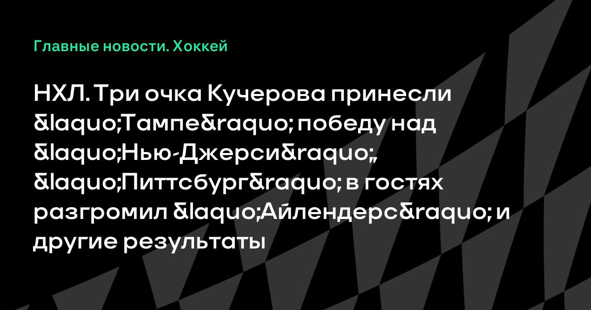 НХЛ. Три очка Кучерова принесли «Тампе» победу над «Нью-Джерси», «Питтсбург» в гостях разгромил «Айлендерс» и другие результаты