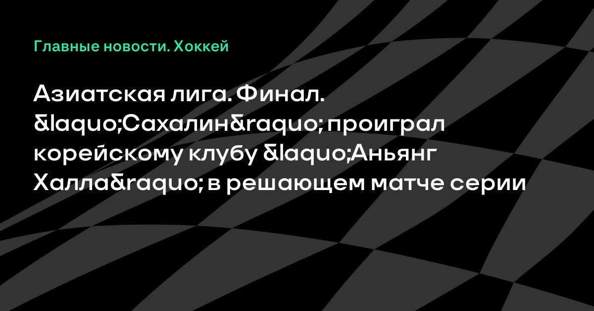 Сегодня определился чемпион Азиатской хоккейной лиги. В решающем матче финальной серии «Сахалин» в Южно-Сахалинске уступил корейскому клубу «Аньянг Халла».