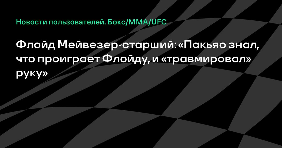Флойд Мейвезер-старший: «Пакьяо знал, что проиграет Флойду, и «травмировал» руку»
