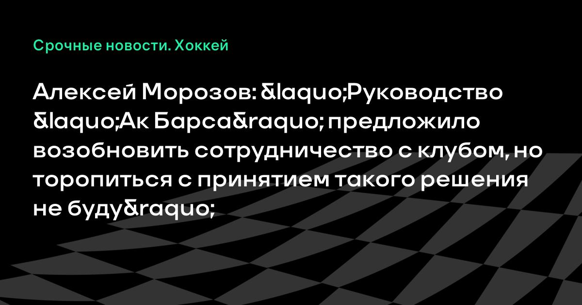 Алексей Морозов: «Руководство «Ак Барса» предложило возобновить сотрудничество с клубом, но торопиться с принятием такого решения не буду»