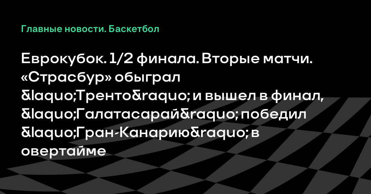 Еврокубок. 1/2 финала. Вторые матчи. «Страсбур» обыграл «Тренто» и вышел в финал, «Галатасарай» победил «Гран-Канарию» в овертайме
