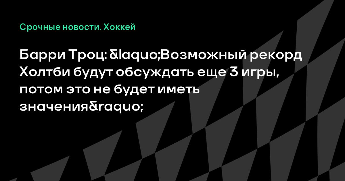 Конечно, Холтби хочет установить рекорд и прикоснуться к истории. Есть ли дополнительное давление на него? Это зависит от него самого, сейчас все об этом говорят. Будут обсуждать еще три игры, а потом все это не будет иметь значения. В любом случае, имя Холтби поднимут наверх к другим вратарям в Зале славы», – уверен Троц.