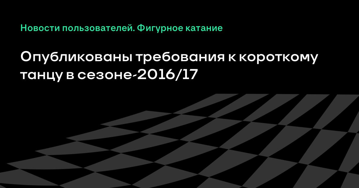 Международный союз конькобежцев (ISU) опубликовал требования к короткому танцу в сезоне-2016/17