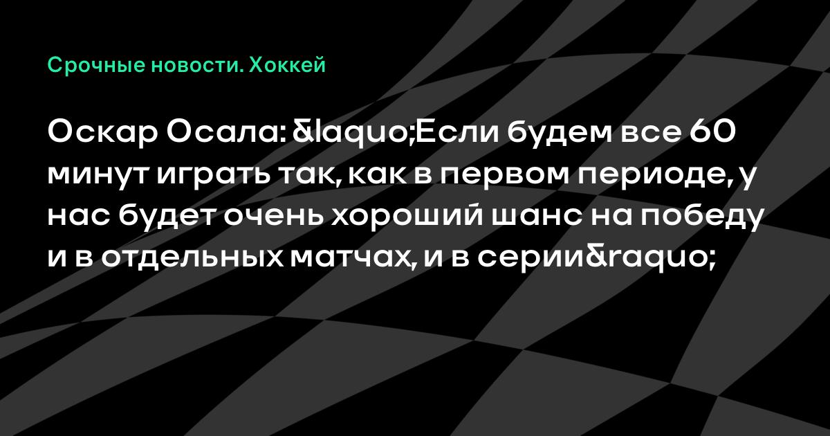 – Если будем все 60 минут играть так, как в первом периоде, у нас будет очень хороший шанс на победу и в отдельных матчах, и в серии, – заявил Осала.