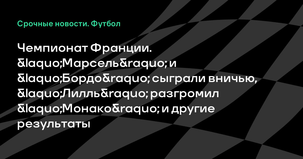 Чемпионат Франции. «Марсель» и «Бордо» сыграли вничью, «Лилль» разгромил «Монако» и другие результаты