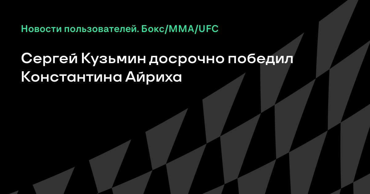 Российский боксер-тяжеловес Сергей Кузьмин одержал седьмую победу на профессиональном ринге, одолев немца Константина Айриха. Бой, прошедший в пятницу в Москве, завершился победой Кузьмина техническим нокаутом во втором раунде.