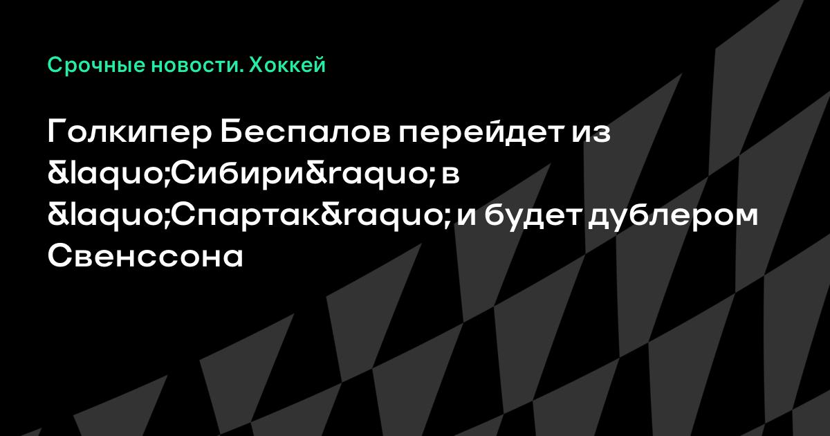 Голкипер Беспалов перейдет из «Сибири» в «Спартак» и будет дублером Свенссона