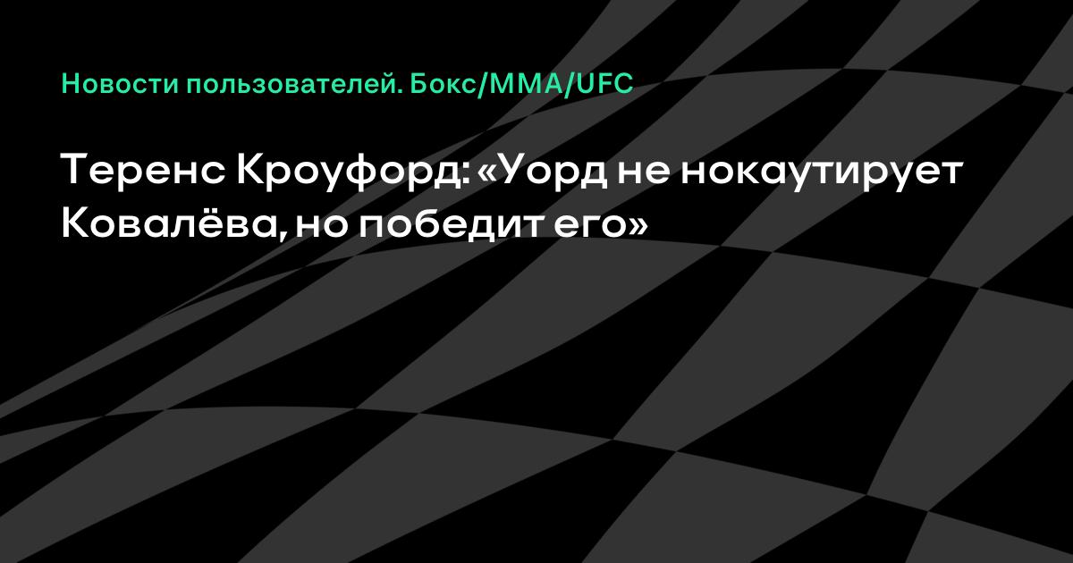 Чемпион мира в первом полусреднем весе по версии WBO Теренс Кроуфорд считает, что бывший чемпион во втором среднем весе Андрэ Уорд победит чемпиона WBA/WBO/IBF в полутяжёлой категории Сергея Ковалёва.