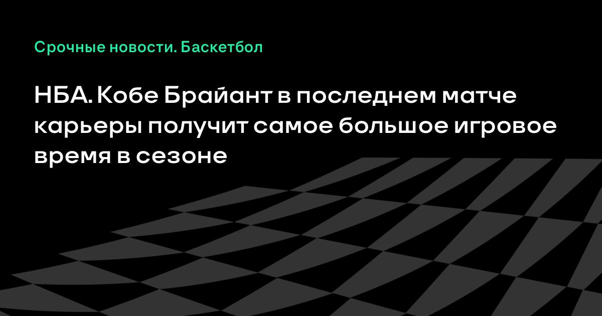 НБА. Кобе Брайант в последнем матче карьеры получит самое большое игровое время в сезоне
