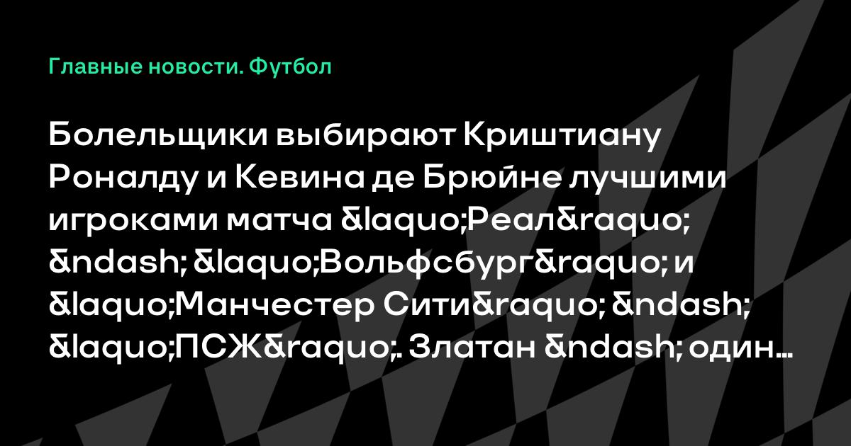 Болельщики выбирают Криштиану Роналду и Кевина де Брюйне лучшими игроками матча «Реал» – «Вольфсбург» и «Манчестер Сити» – «ПСЖ». Златан – один из худших