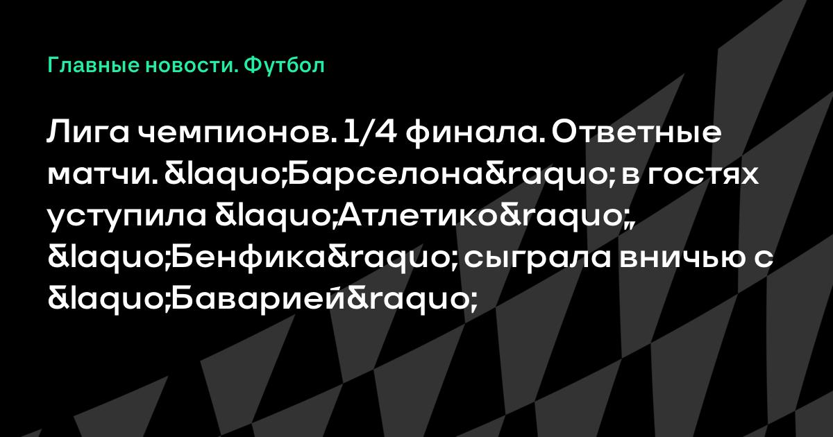 Лига чемпионов. 1/4 финала. Ответные матчи. «Барселона» в гостях уступила «Атлетико», «Бенфика» сыграла вничью с «Баварией»
