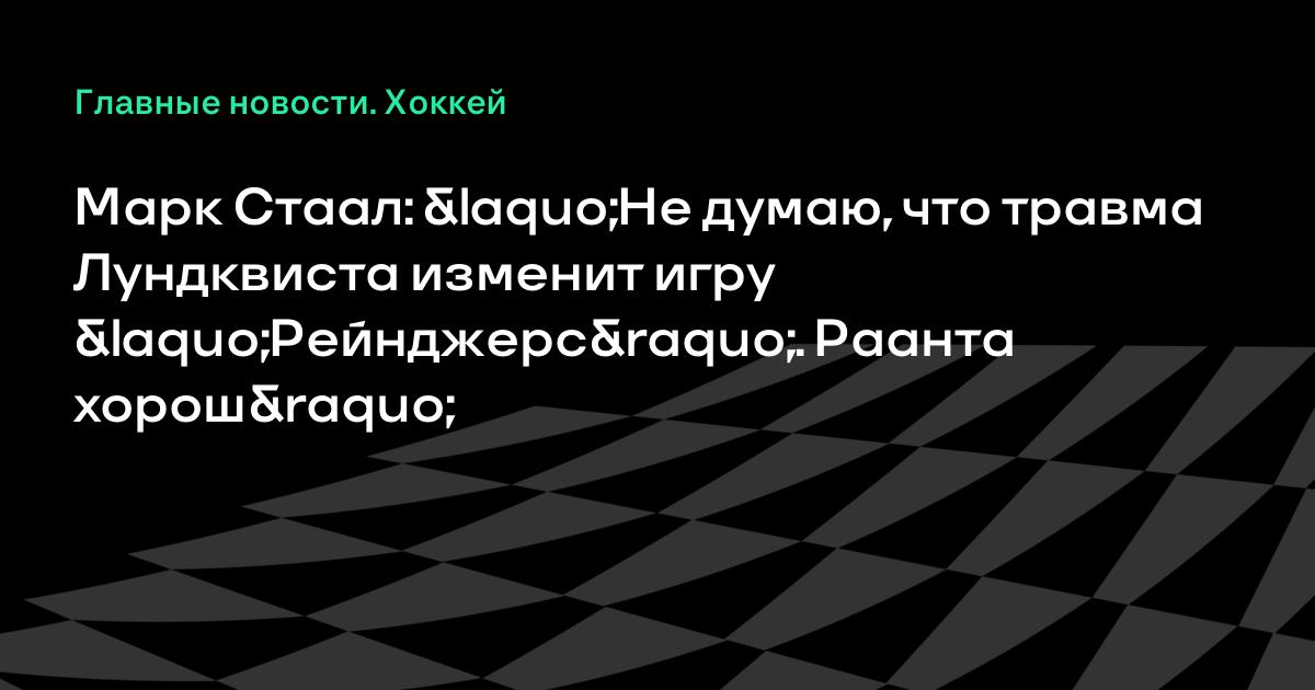 Марк Стаал: «Не думаю, что травма Лундквиста изменит игру «Рейнджерс». Раанта хорош»