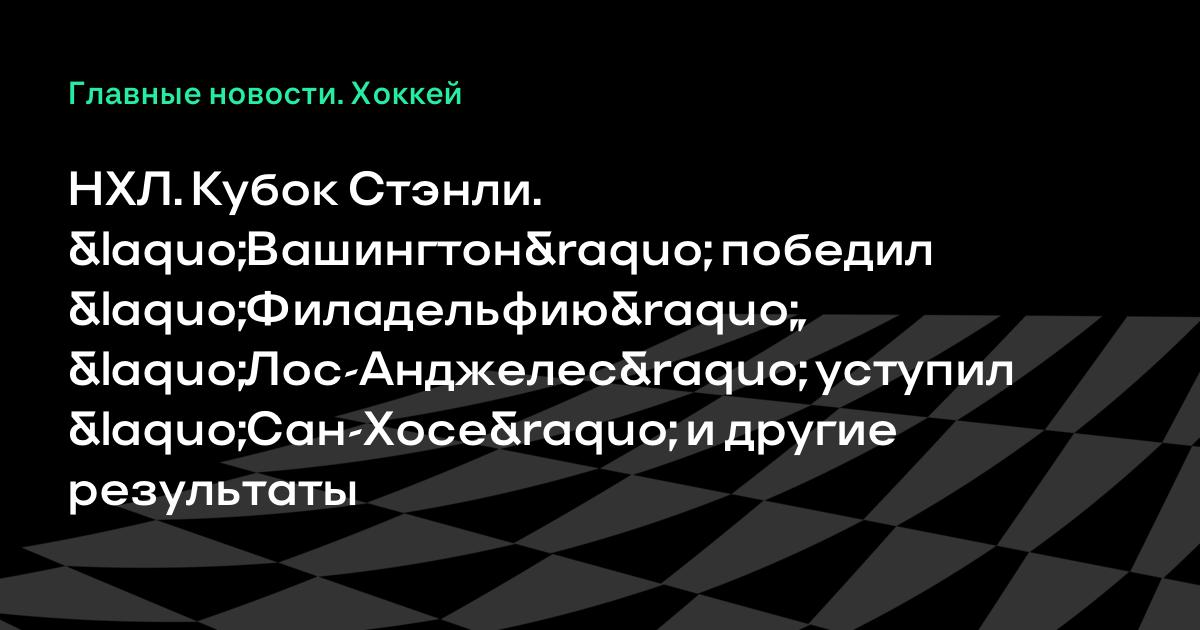 НХЛ. Кубок Стэнли. «Вашингтон» победил «Филадельфию», «Лос-Анджелес» уступил «Сан-Хосе» и другие результаты