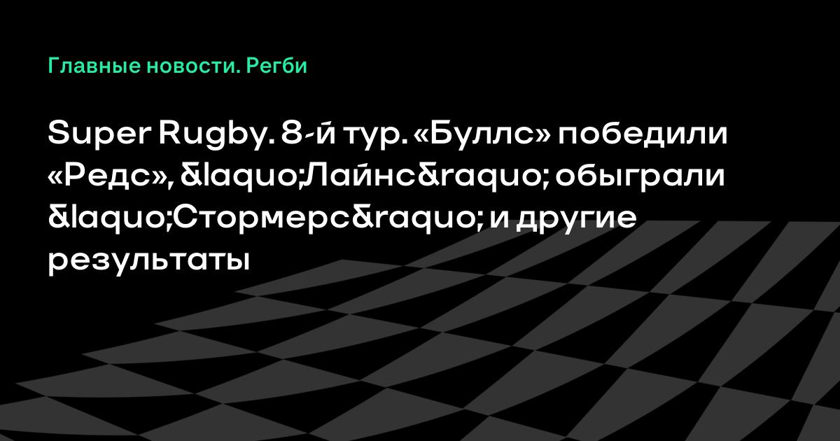 Сегодня прошли матчи 8-го тур регбийного турнира Super Rugby. «Брамбис» одолели «Уоротас» (26:20), «Буллс» победили «Редс» (41:22), «Лайнс» обыграли «Стормерс» (29:22).