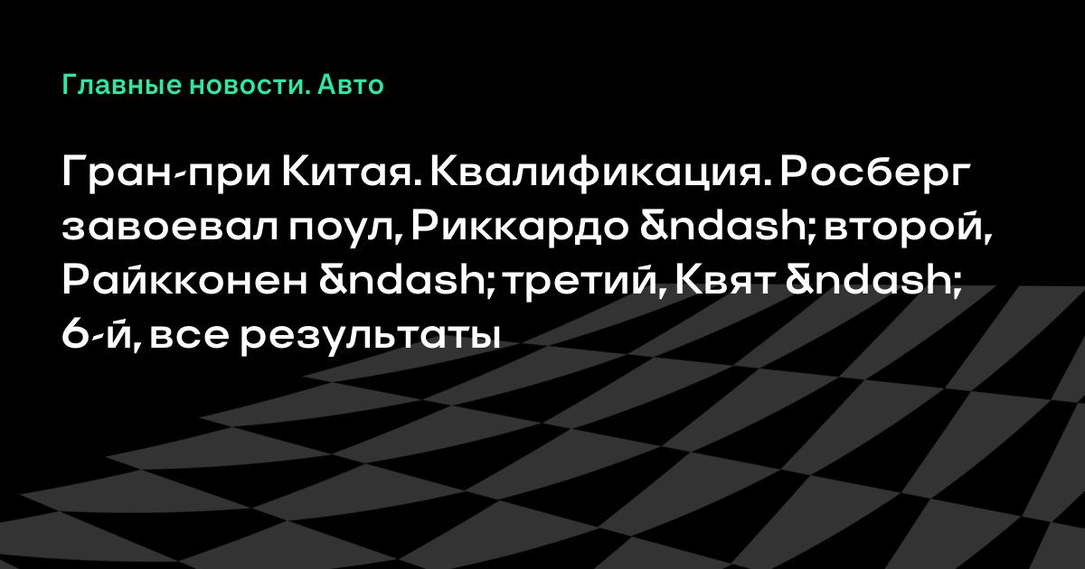 Гран-при Китая. Квалификация. Росберг завоевал поул, Риккардо – второй, Райкконен – третий, Квят – 6-й, все результаты