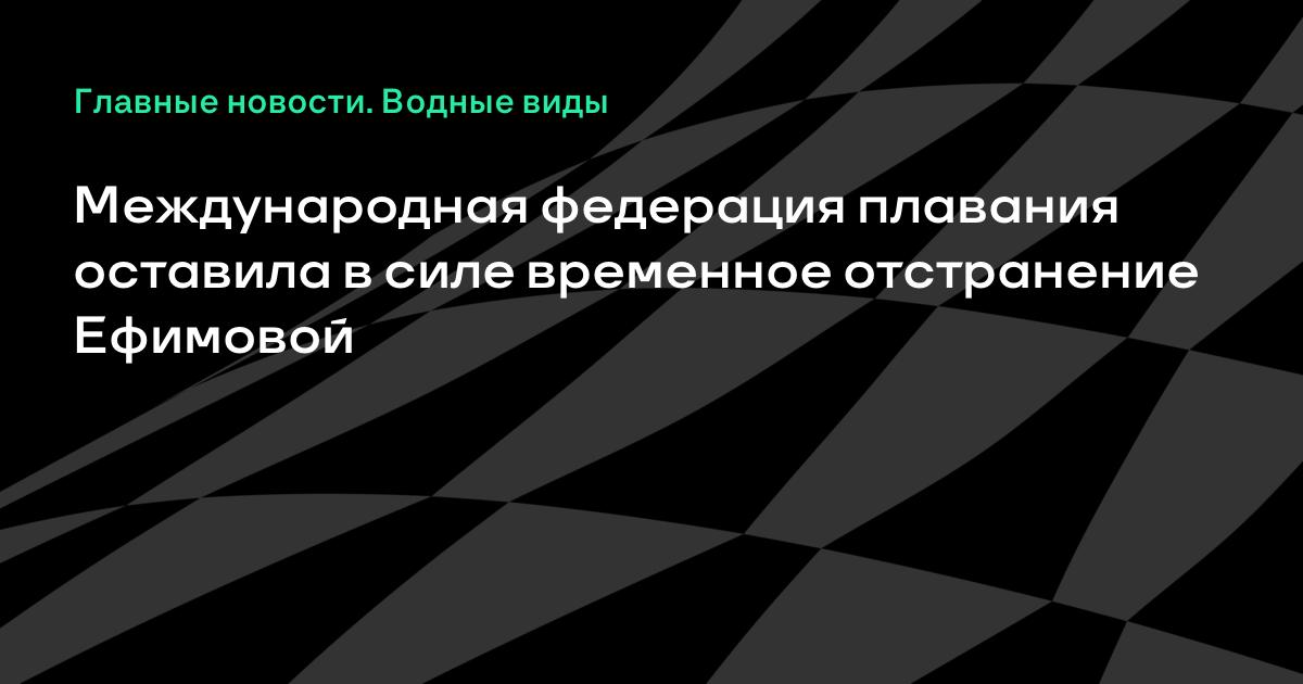 Международная федерация плавания (FINA) приняла решение сохранить в силе временное отстранение россиянки Юлии Ефимовой.