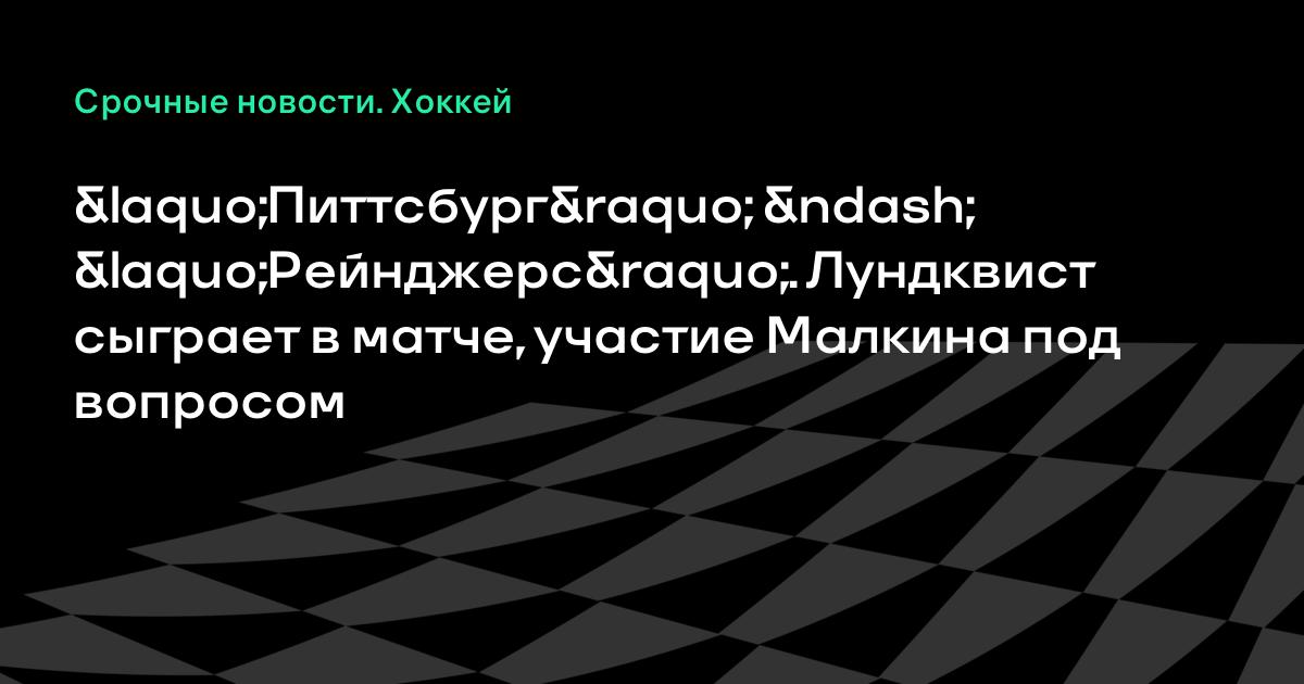 «Питтсбург» – «Рейнджерс». Лундквист сыграет в матче, участие Малкина под вопросом