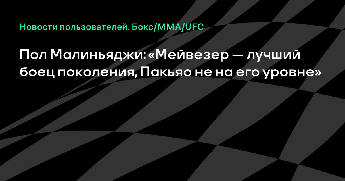 Пол Малиньяджи: «Мейвезер — лучший боец поколения, Пакьяо не на его уровне»