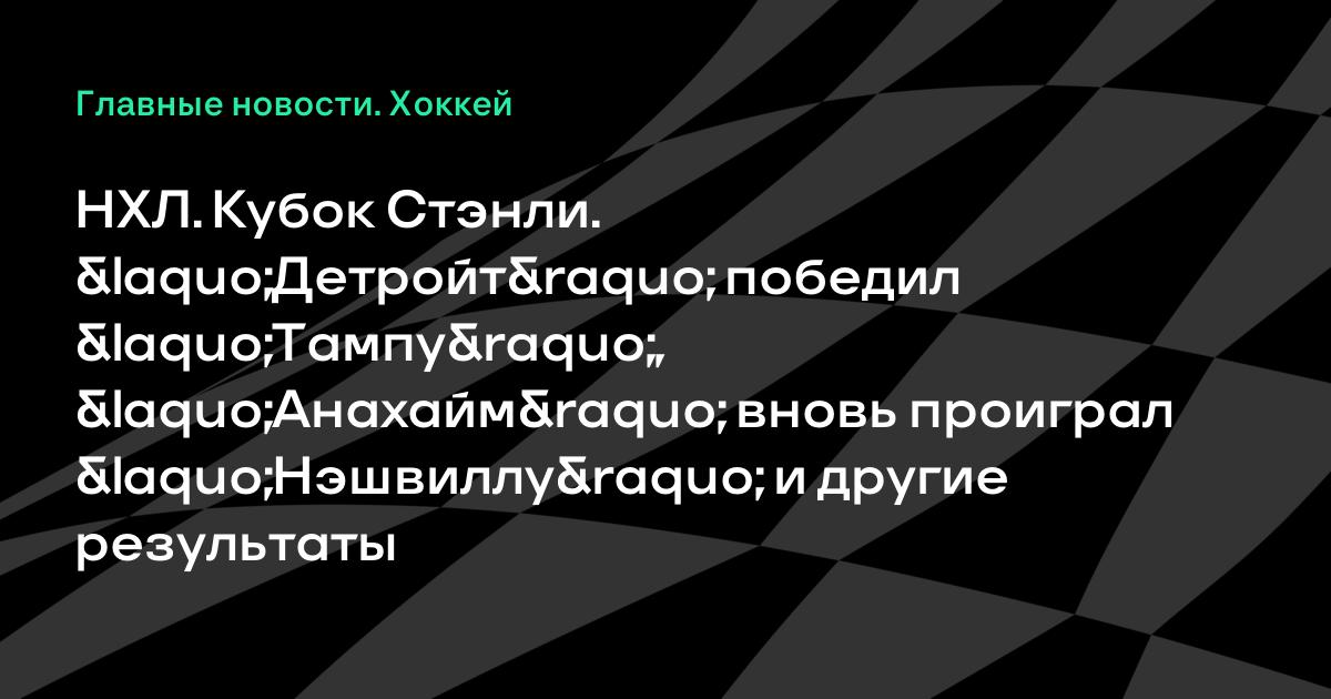НХЛ. Кубок Стэнли. «Детройт» победил «Тампу», «Анахайм» вновь проиграл «Нэшвиллу» и другие результаты