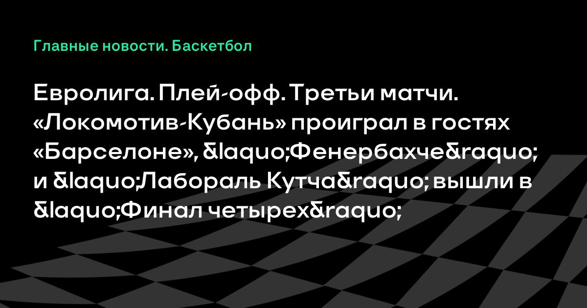 Евролига. Плей-офф. Третьи матчи. «Локомотив-Кубань» проиграл в гостях «Барселоне», «Фенербахче» и «Лабораль Кутча» вышли в «Финал четырех»