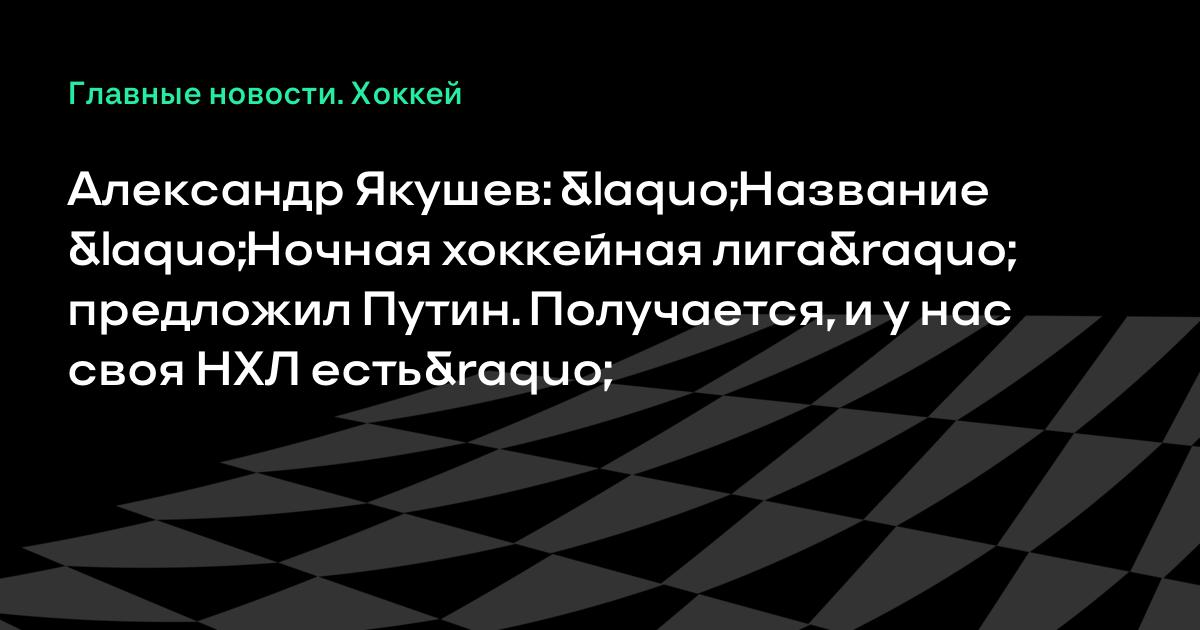 Александр Якушев: «Название «Ночная хоккейная лига» предложил Путин. Получается, и у нас своя НХЛ есть»