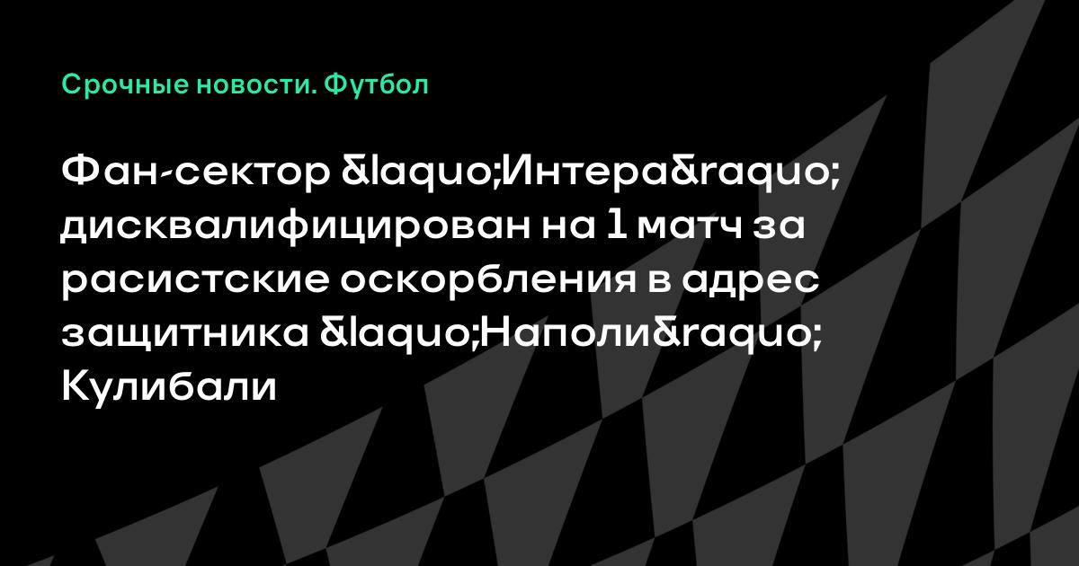 Фанатская трибуна «Интера» дисквалифицирована на один матч за расистские оскорбления защитника «Наполи» Калиду Кулибали.